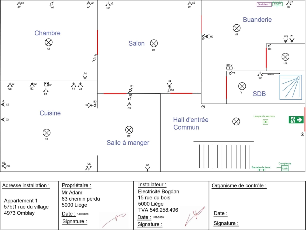 Les schémas peuvent être réalisés par votre électricien/installateur, par vous-même (à l’aide de logiciels spécialisés), ou par un bureau d’études. Important : l’organisme de contrôle (comme Certinergie) ne peut jamais réaliser ces schémas car il y aurait conflit d’intérêt avec sa mission de vérification.